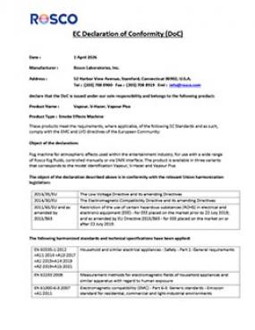 Rosco Vapour machines have been tested for use in professional theatrical productions and are included under the Equipment-Based Guidelines of the Equity-League Pension and Health Trust Funds . Rosco Vapour machines are also compliant with the Alliance of Motion Picture and Television Producers Safety Bulletin #10.